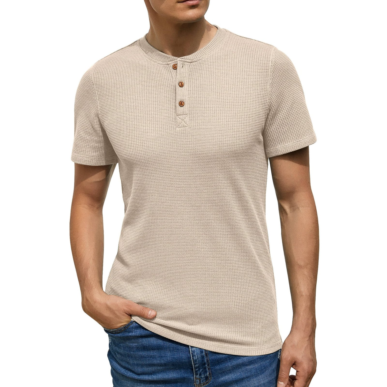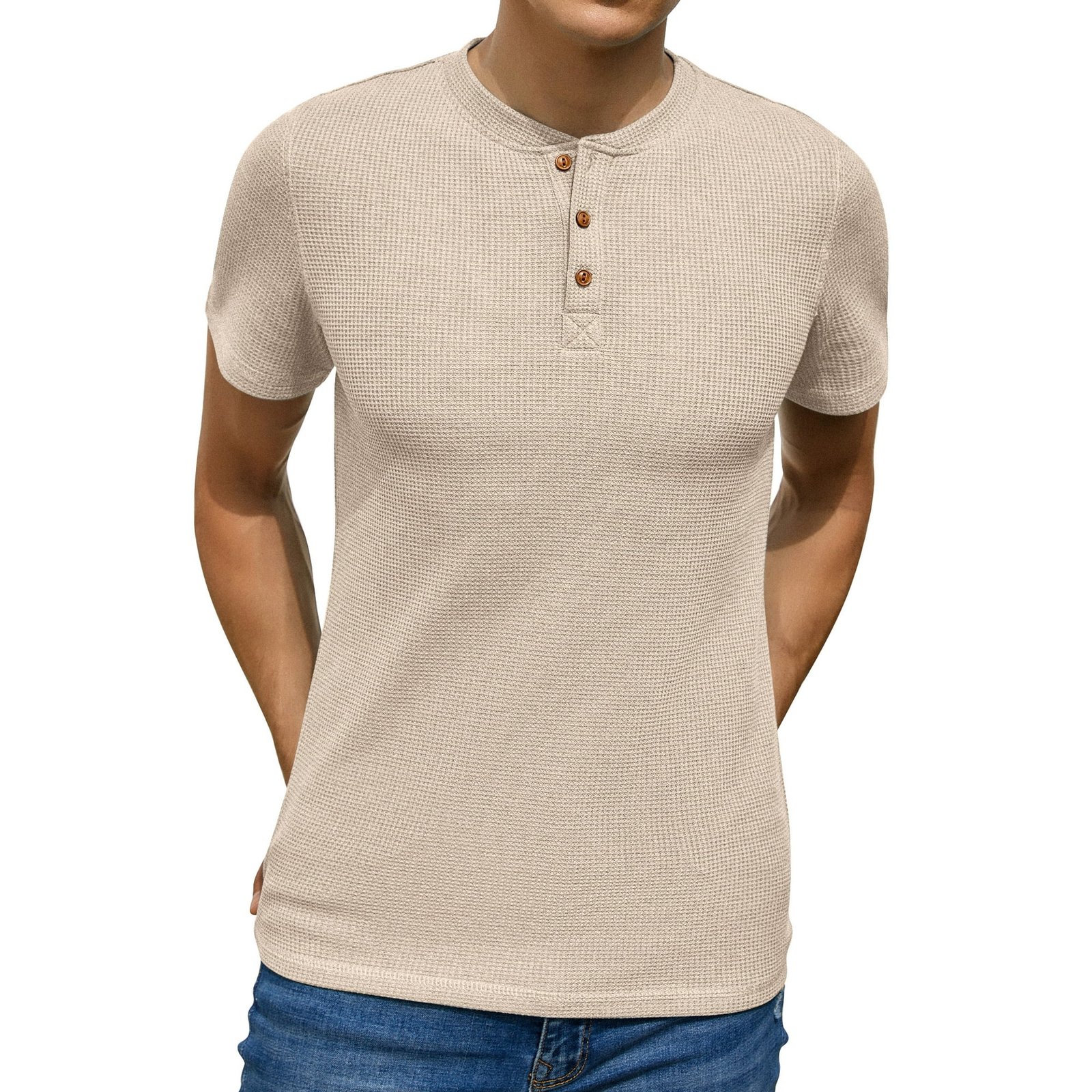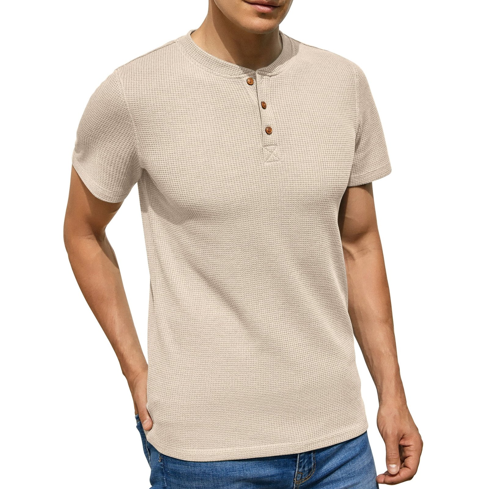 The GIRUNS Men’s Short Sleeve Waffle Henley T-Shirt is the ideal combination of comfort and style for any casual wardrobe. Made from a soft, textured waffle knit fabric, this t-shirt offers a unique look while ensuring breathability and comfort. The classic Henley design, featuring a three-button placket, adds a timeless touch to this versatile piece. Perfect for pairing with jeans, chinos, or shorts, this t-shirt transitions seamlessly from relaxed weekends to casual outings. Whether you’re lounging at home or heading out, the waffle knit texture and Henley details make this t-shirt a standout choice.